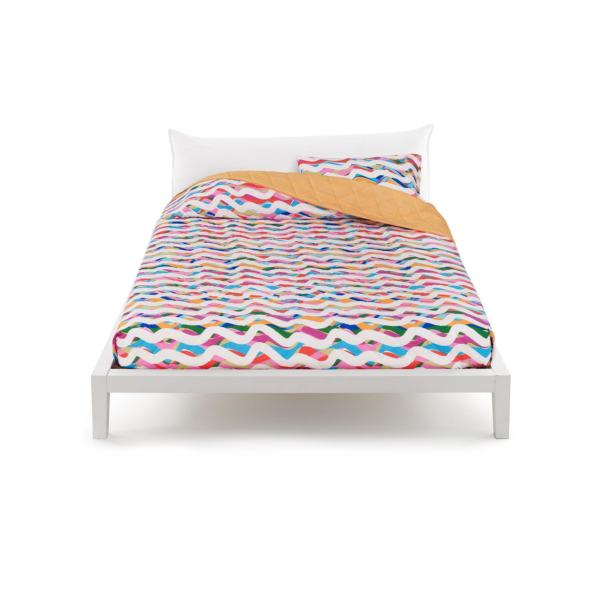 Bellissimo copriletto trapuntato con righe multicolor della linea bustier di bassetti per letto singolo a una piazza.