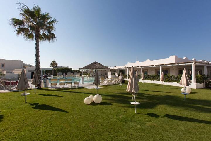 Gli appartamenti confortevoli ed eleganti tutti climatizzati con tv sat, sono inseriti nelle caratteristiche unità abitative del borgo e possono essere situati o al piano terra con veranda o giardino o al primo piano con terrazzo coperto, balcone attrezzato con kit per esterno e posto auto coperto.